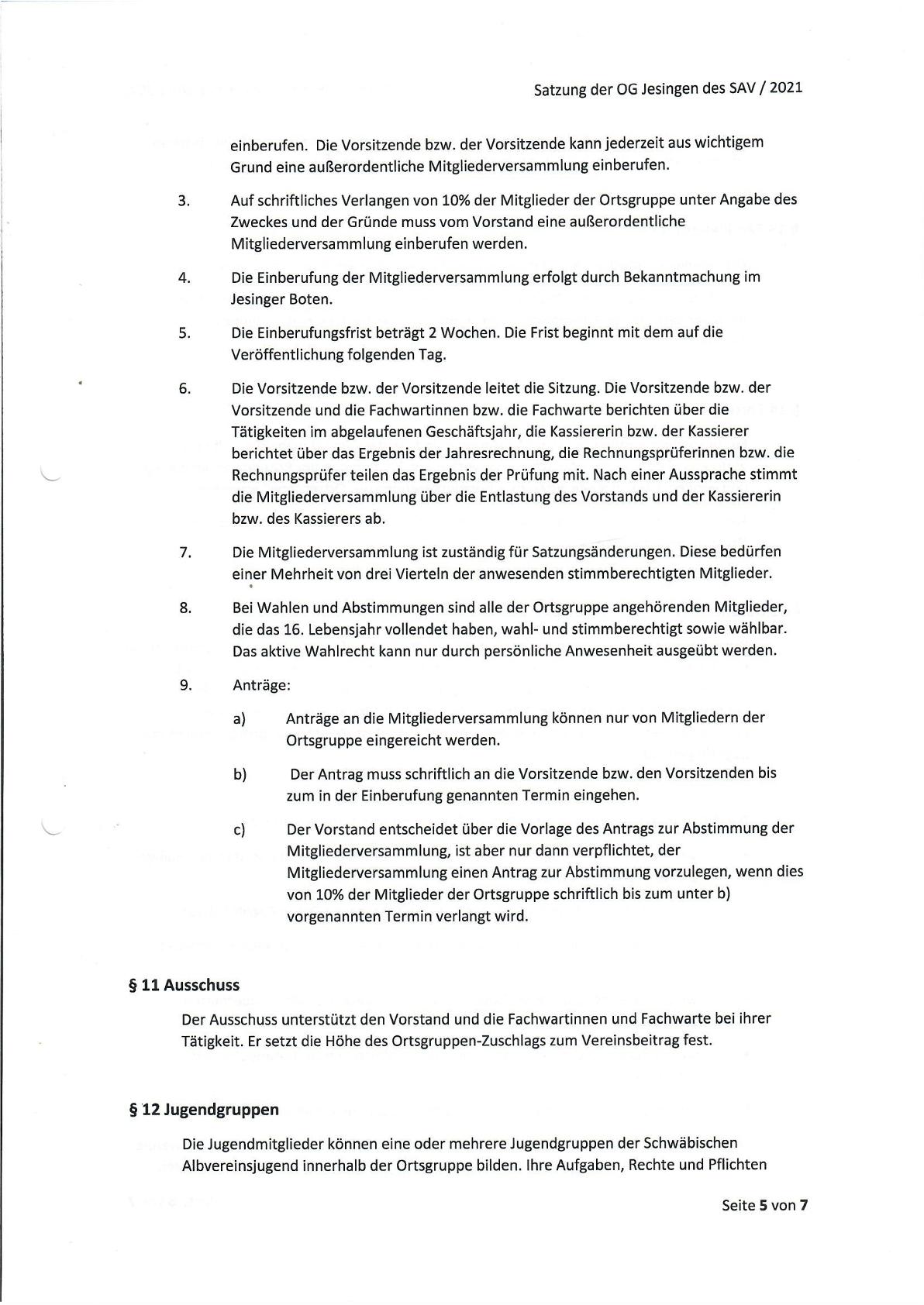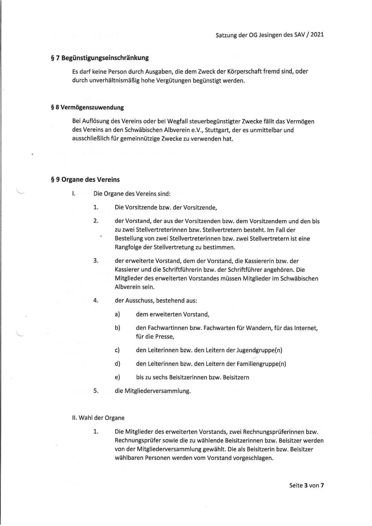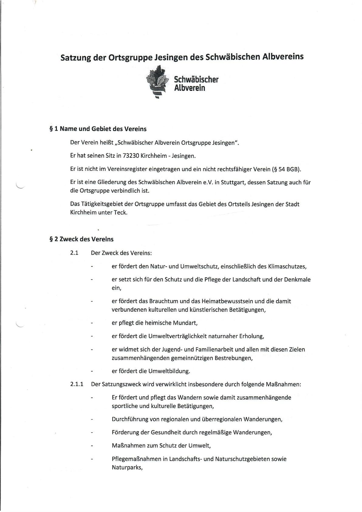 Unsere Vereinssatzung