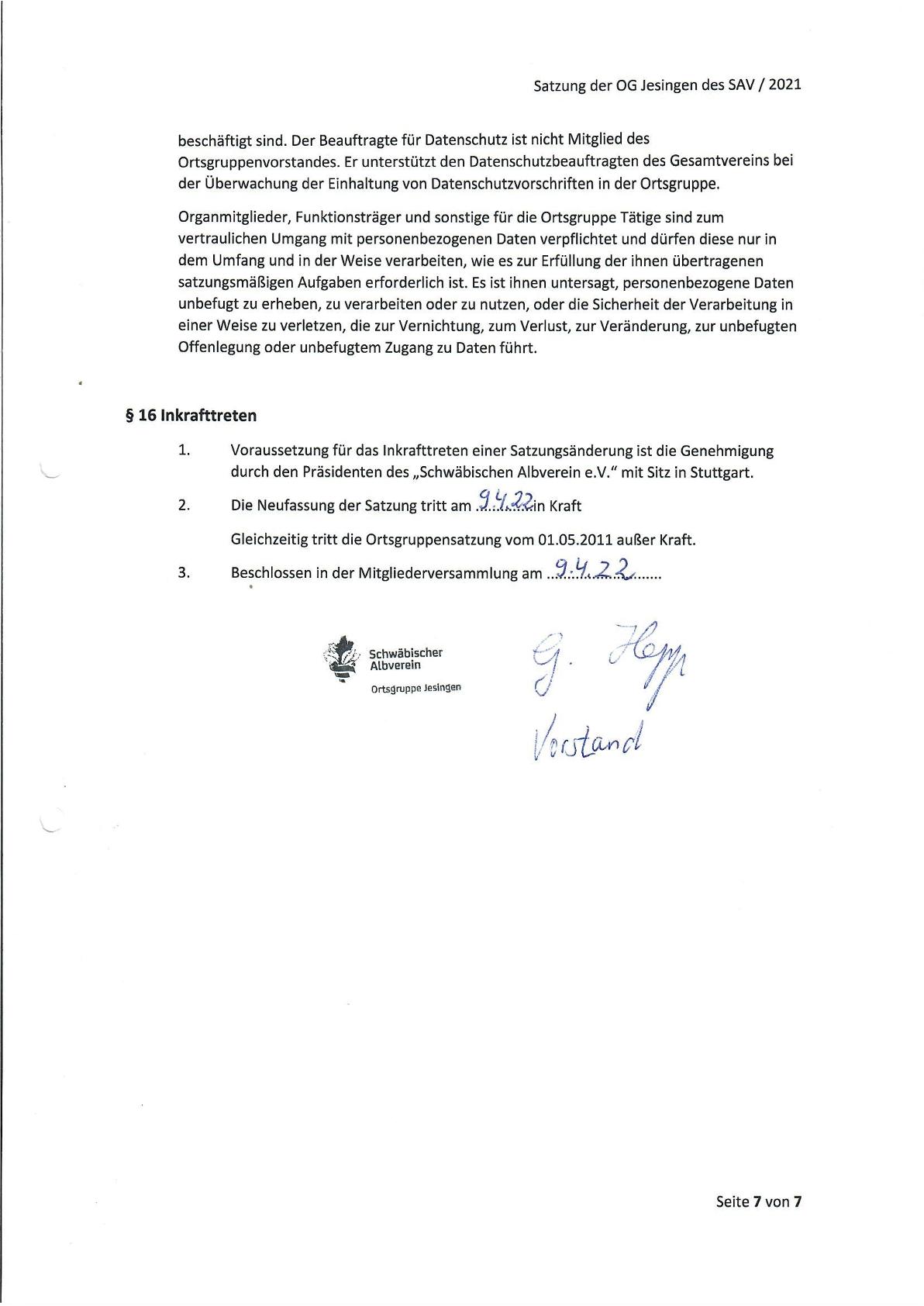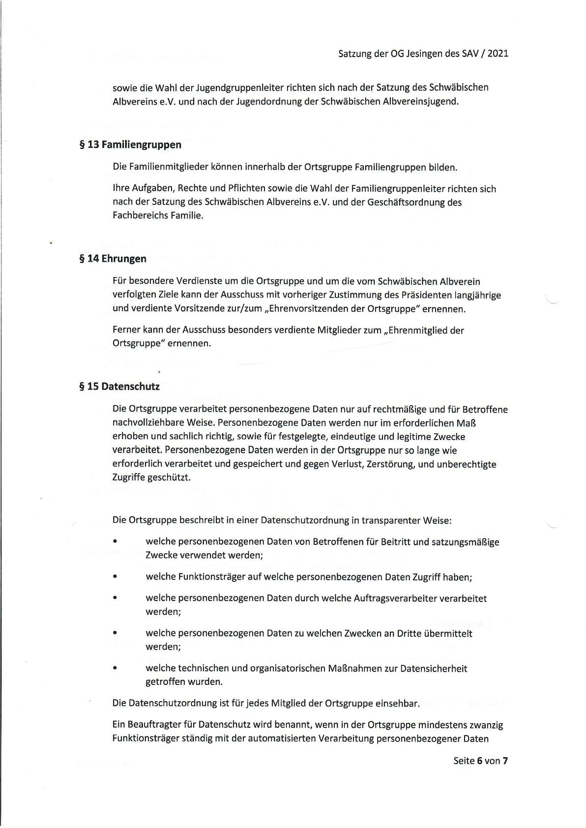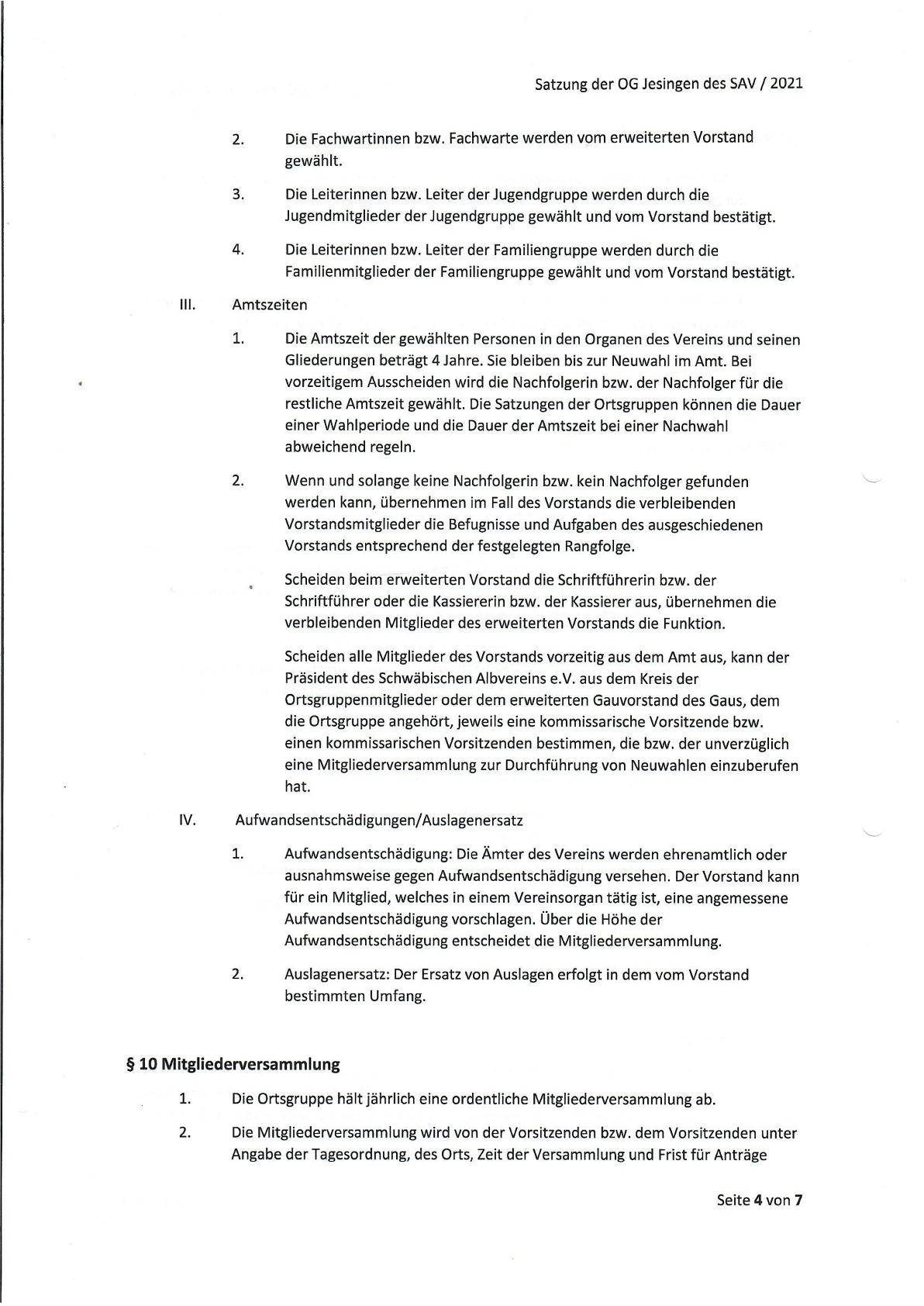 Unsere Vereinssatzung