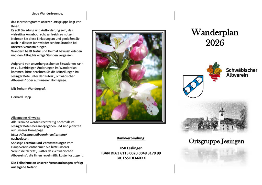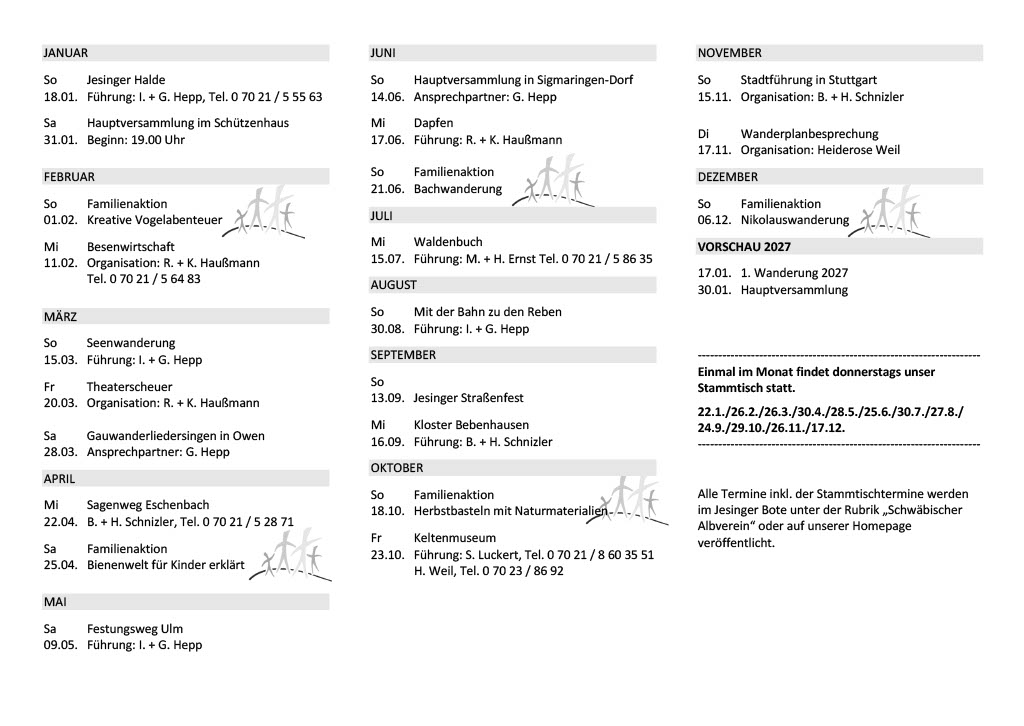 Wanderplan 2026 und Aktivitäten, Übersicht